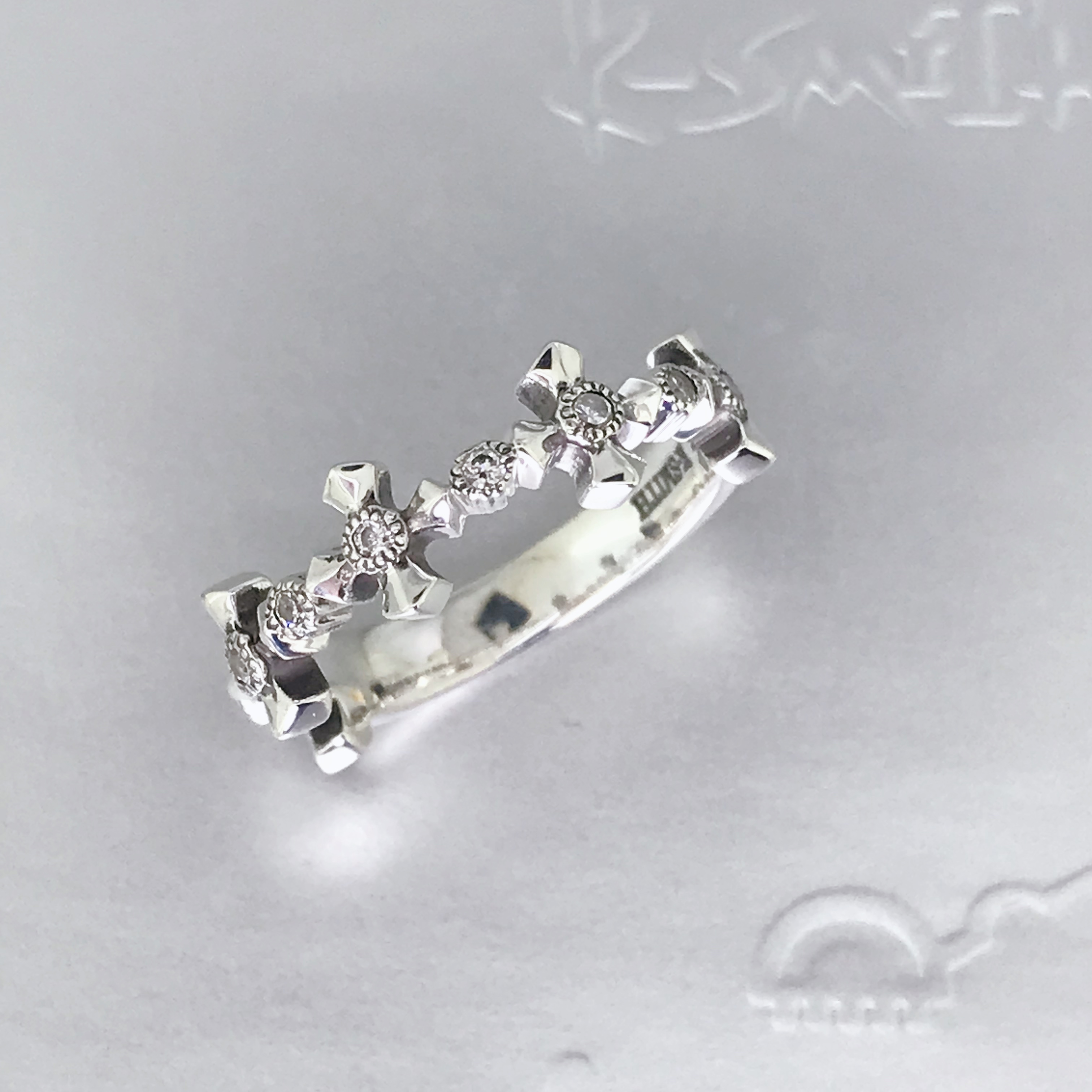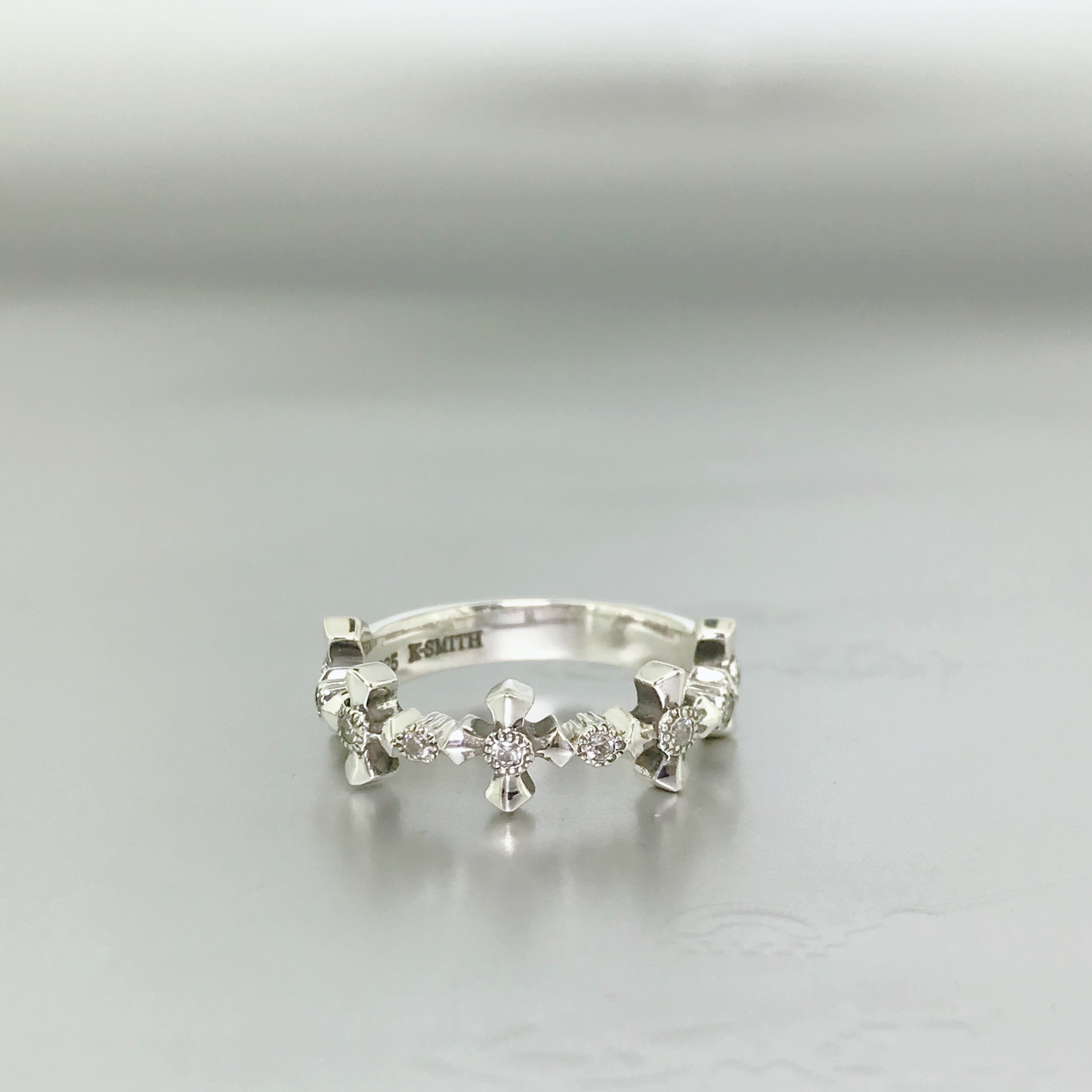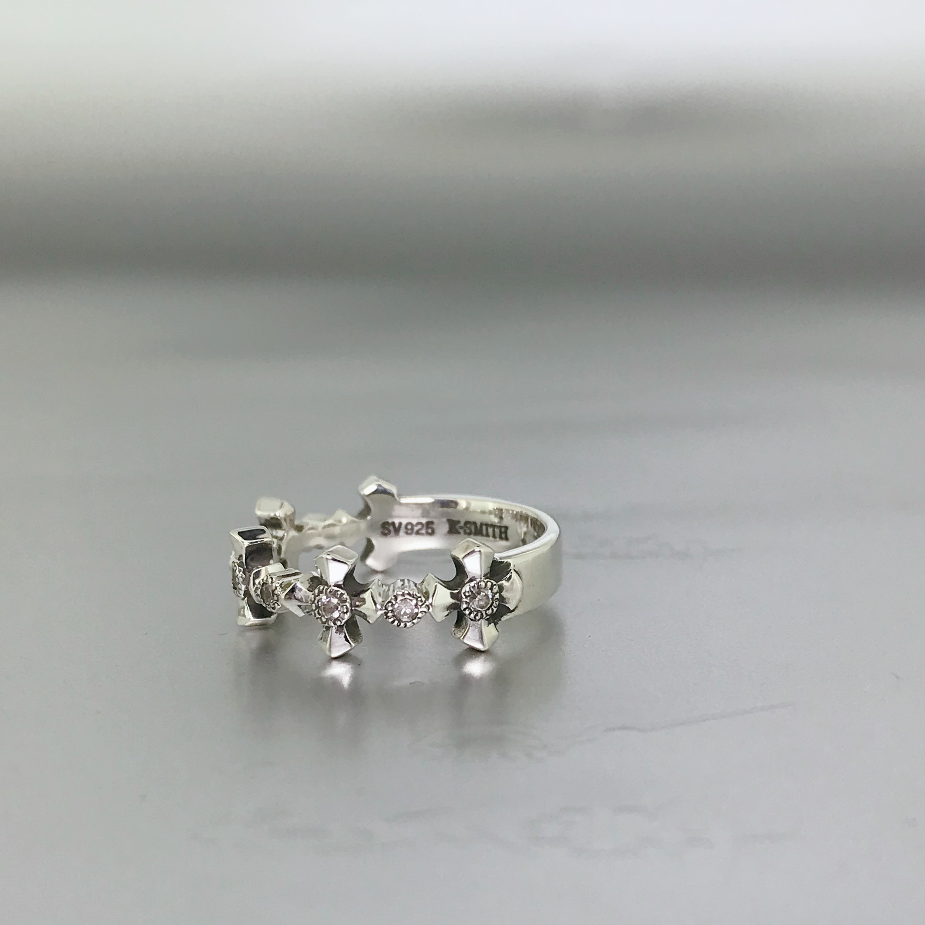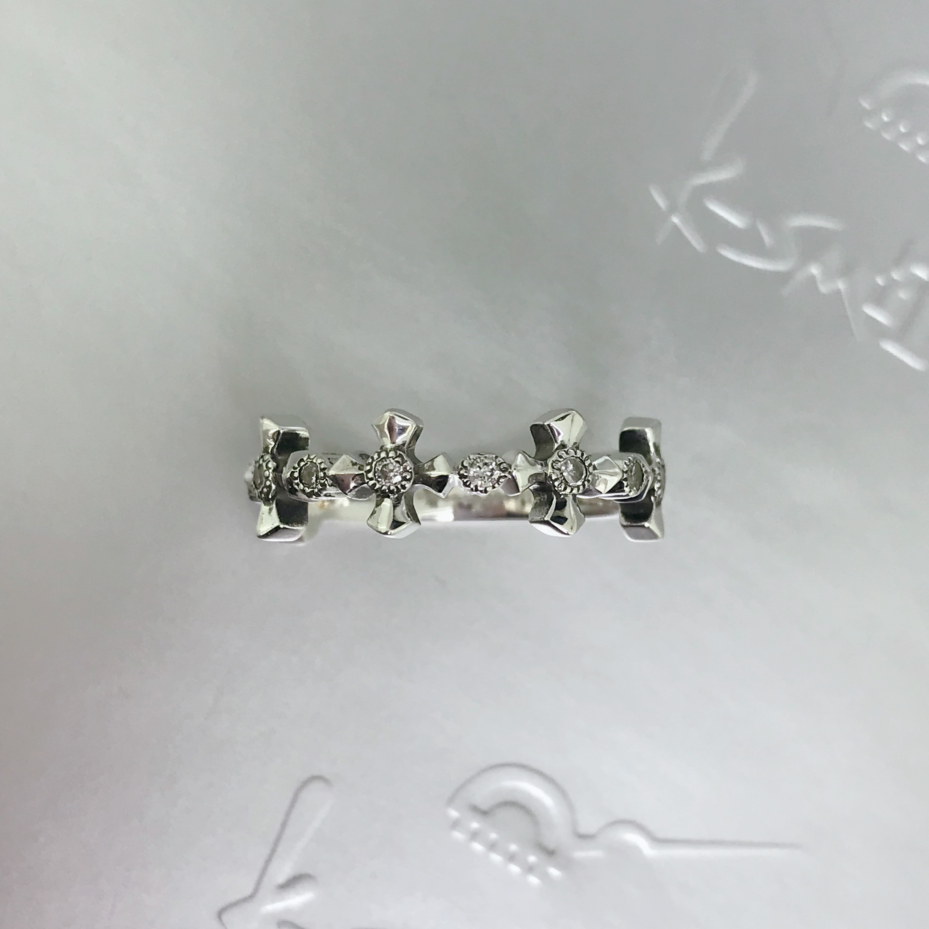クロスとホワイトジルコニアが連なったRING 素材:シルバー 幅5.56mm 厚み1.56mm