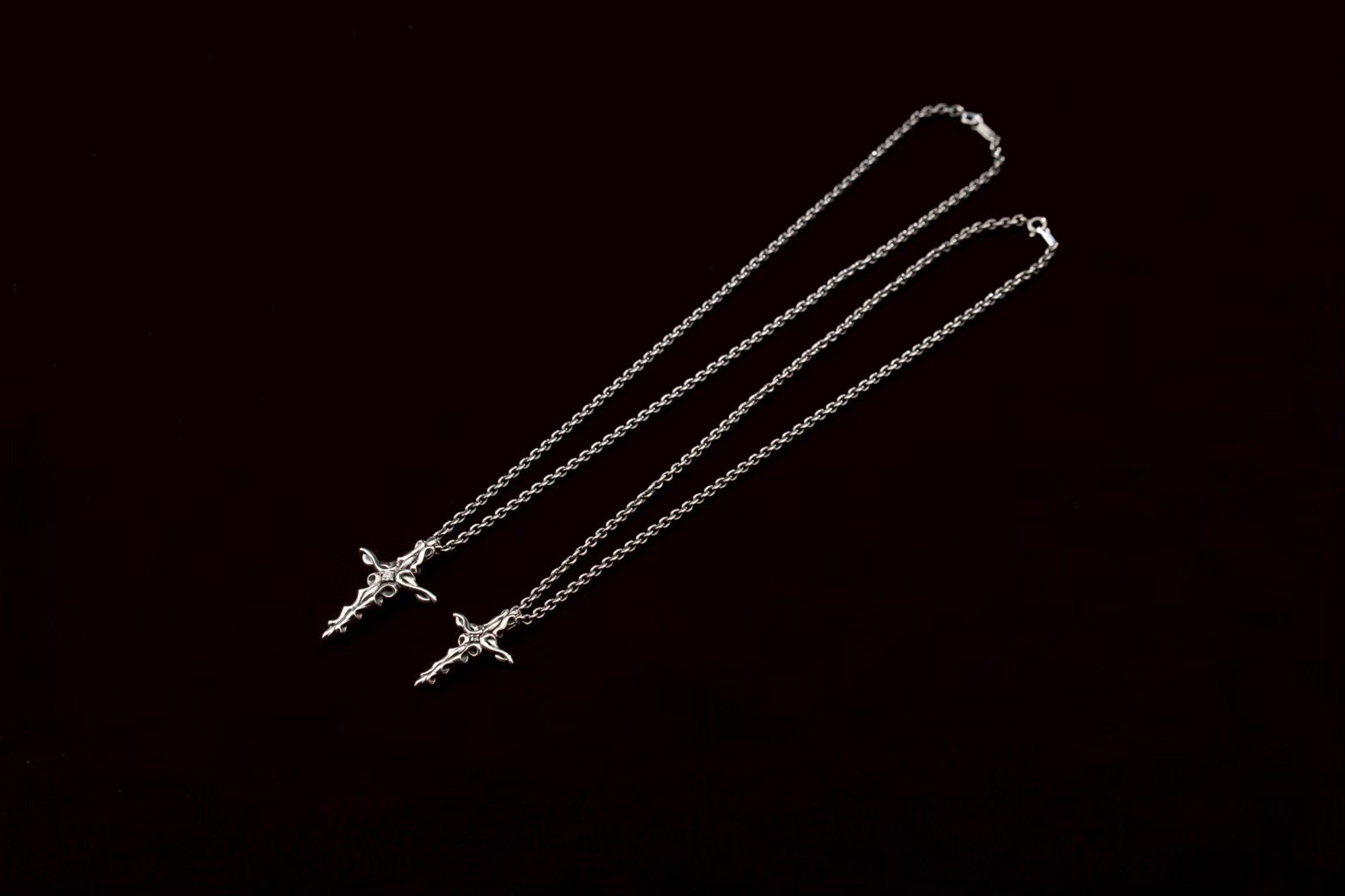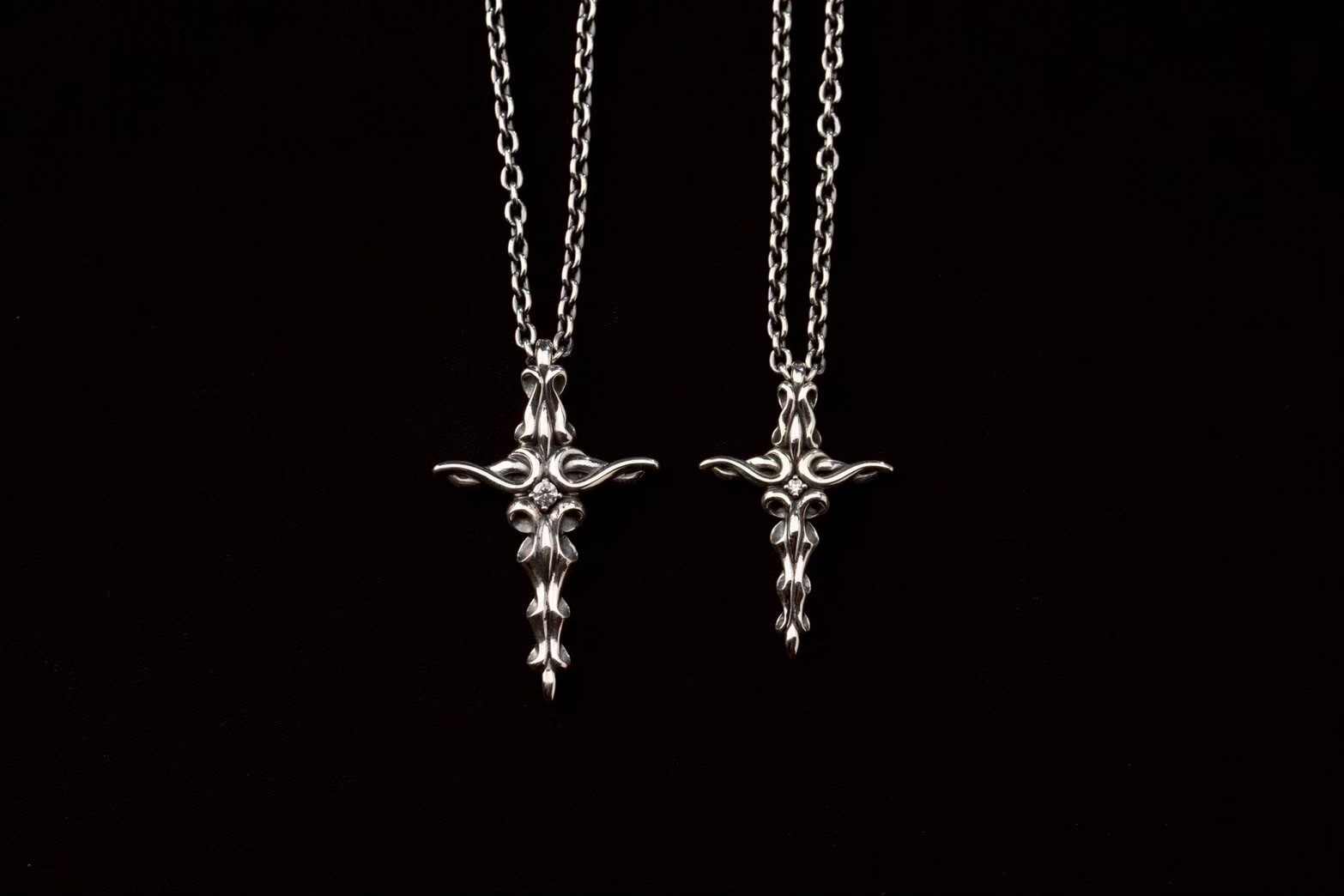 SILVER925 クロスLサイズ 全長45㎜×28mm×5.8㎜厚み 小豆チェーン幅2.7㎜線形0.8㎜50㎝ 石3㎜ ブラックジルコニアかホワイト ジルコニアかお選びください。
