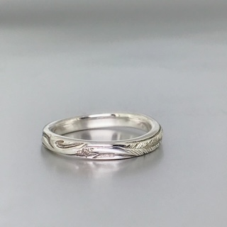 KI-606L-GT-DIA レディースリング フェザー手彫りタイプ石付