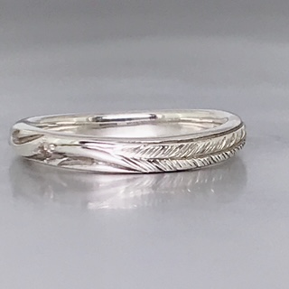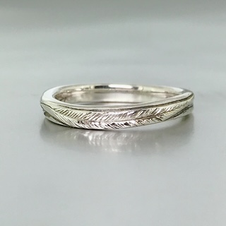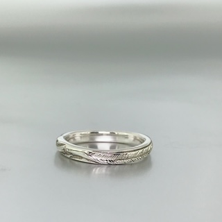 フェザーの羽の筋を1本1本心を込めて手彫りしています!!!柄の部分には1.2㎜ダイアモンドの留まる写真モデルです。